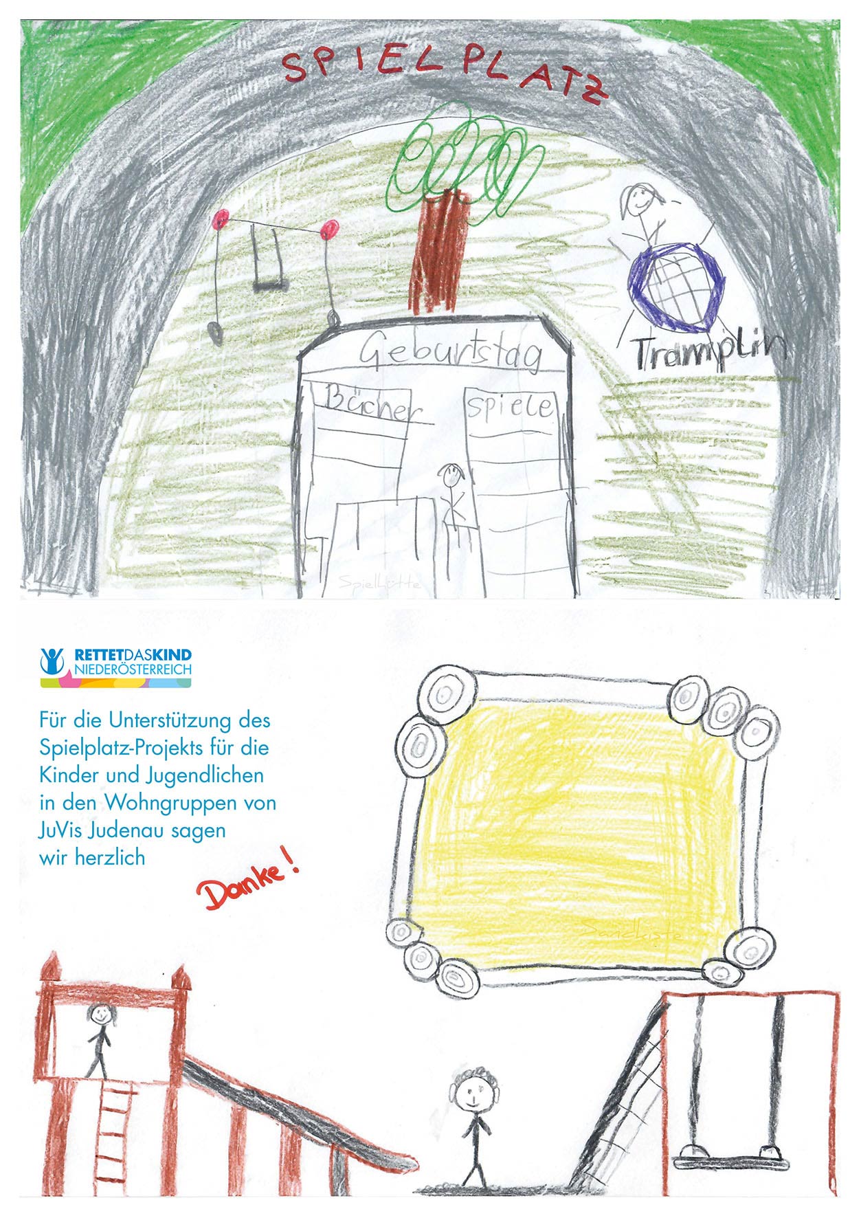 Ein 9-jähriges Mädchen und ein 11-jähriger Junge aus den Wohngruppen im JuVis Judenau haben uns mit diesem Bild ebenfalls eine große Freude gemacht! DANKE!