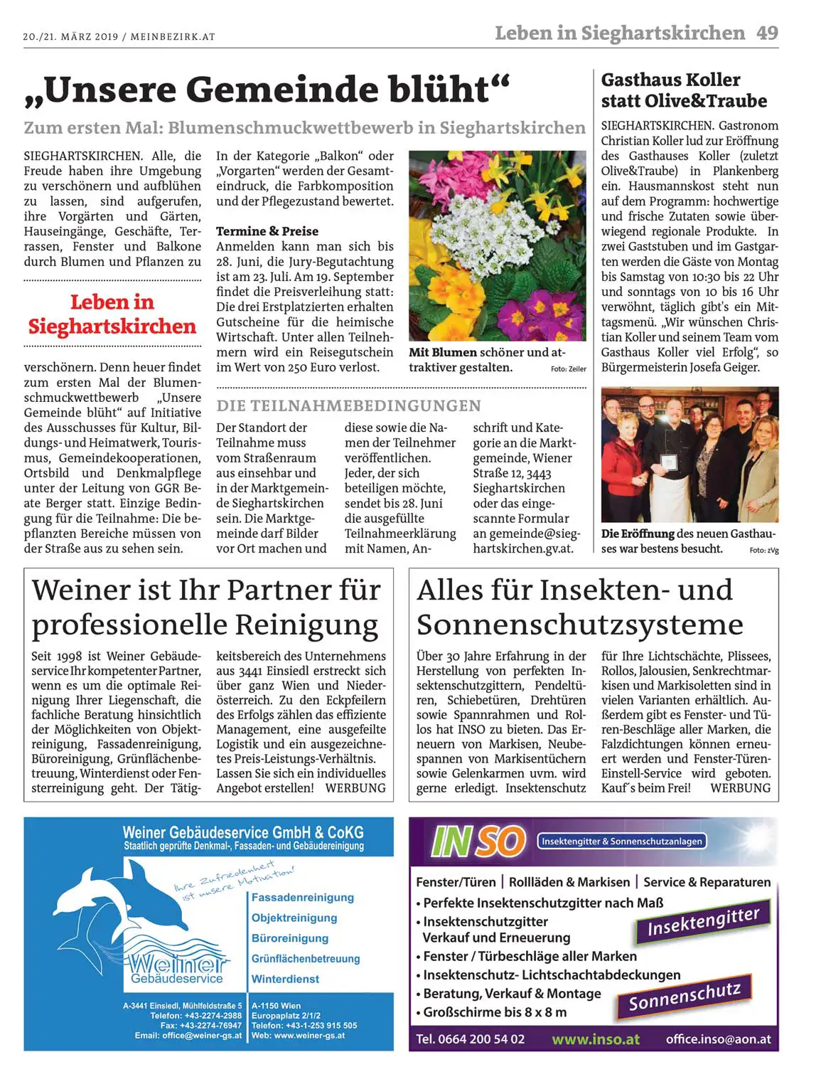 Weiner Gebäudeservice erscheint mit einem Artikel im Extra Teil "Leben in Sieghartskirchen" der Bezirksblätter Tulln