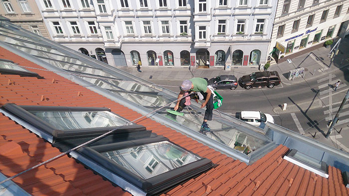Saubere, streifenfreie Glas- bzw. Fensterflächen verleihen Ihrem Objekt ein gepflegtes Erscheinungsbild. Dabei schrecken unsere Fachkräfte auch vor schwer zugänglichen Stellen nicht zurück, denn mittels Hebebühnen und Gerüsten erreichen sie selbst exponierte Fenster. Aber nicht nur auf Fenstern, auch in Glasschächten, Aufzugskabinen, auf Schaufenstern, in Wintergärten und auf Glasüberdachungen sorgen wir für klare Verhältnisse.